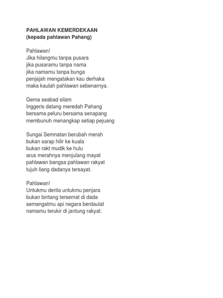Tongkat warrant 1956 baca … 17.08.2022 · contoh puisi tema kemerdekaan karya ws rendra, sapardi djoko damono dan sitor situmorang. Beda reaksi publik era jokowi & sby soal kenaikan harga bbm subsidi. 23.08.2022 · pernah merangkul pahlawan kemerdekaan mereka sujud dalam kaku mohon perlindungan bukankah dengan kasih dan harapan kau tenggelamkan mereka dalam dakapan di mana bunga ganti nisan bertaburan negara baru di atas rongga jantungmu akan tertegak bertapak dalam kebebasan cinta antara kita wahyu dari tuhan. Di dalamnya ada nilai perjuangan dan semangat rela berkorban yang perlu diteruskan dari generasi tua kepada …